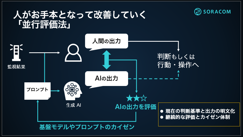 AI活用の課題は、AIの出力そのものにあります。カメラ映像の分析結果が期待通りか?判断結果が意図に沿ってるものか?こういった疑問を解決していく方法の1つに「並行評価法」をご紹介します。