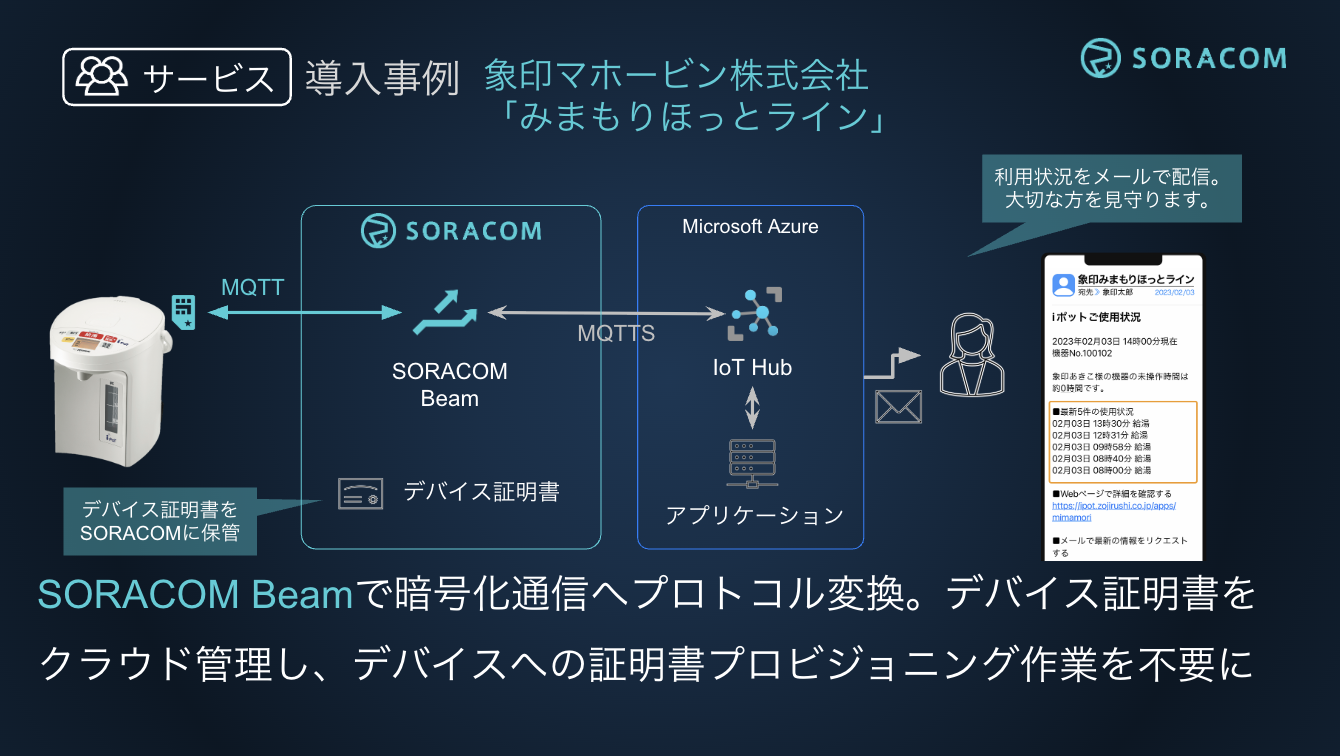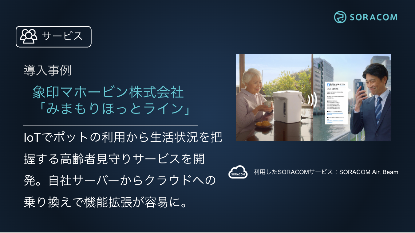 後付けIoTに対して、組み込みIoTは製品やサービスに最初から組み込んでしまう方法だ。子供向けみまもりGPS端末「みてね」を展開するMIXIのようにデバイスをゼロから開発するパターンのほか、ポットに通信機能を追加し、高齢者の見守りを可能にした象印マホービン「みまもりほっとライン」など、既存製品の改良というパターンもある。