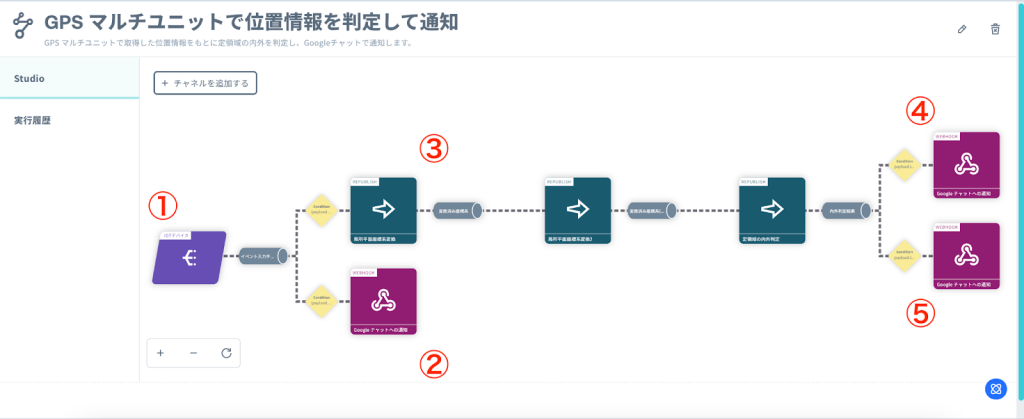 GPS マルチユニットで位置情報を判定して通知 テンプレートの開発