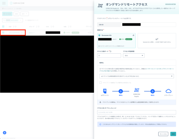 SIM管理画面を開き、リモートアクセスを許可したSIMに対してオンデマンドリモートアクセスを作成してみましょう。