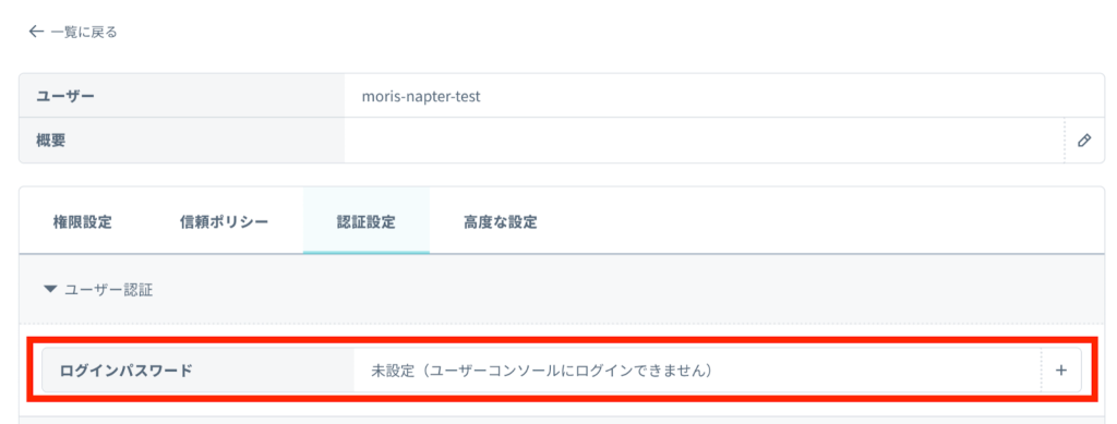最後に、SAMユーザーの設定画面で「認証設定」からSAMユーザーのパスワードを設定し、ユーザーコンソールにログイン可能な状態にしておきましょう。