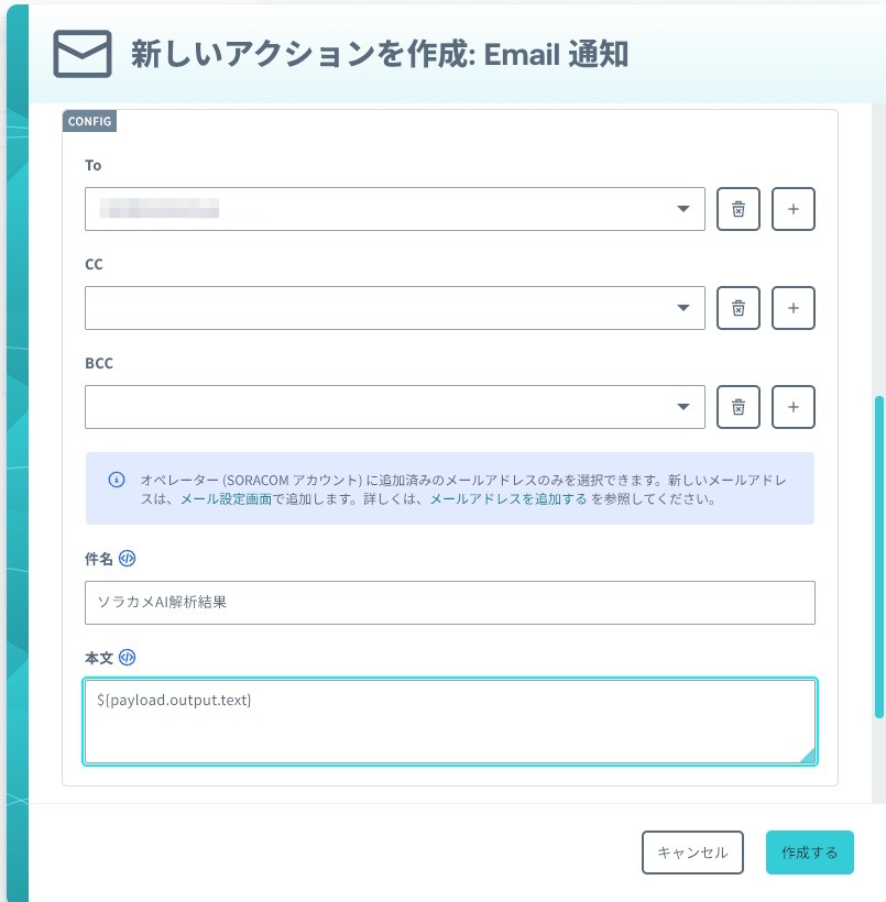 メール通知アクションの場合