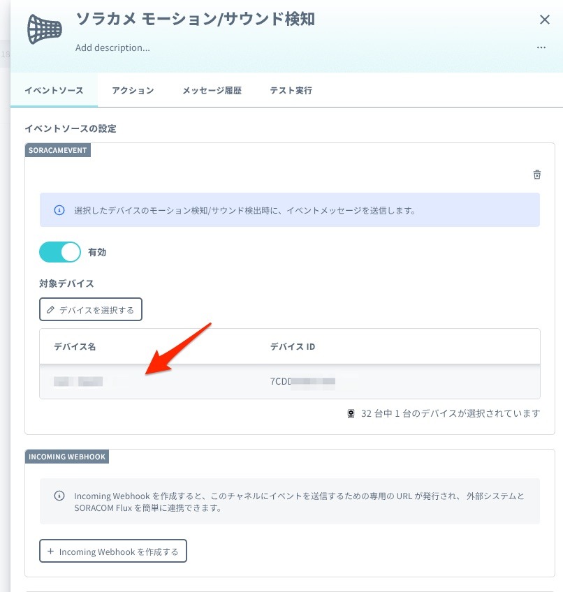 指定したカメラの ソラカメのモーション検知機能 が有効になっていることに注意してください。有効になっていれば、動きを検知したタイミングでこのイベントソースが起動します。