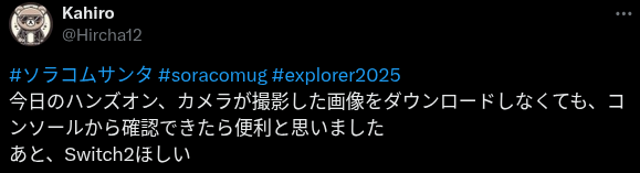 今年もソラコムをご利用いただき、感謝しております。#ソラコムサンタ は年中受け付け、いつでも見守っています。!SORACOM を使ってるときに気になったら、ぜひポストしてみてくださいね。
