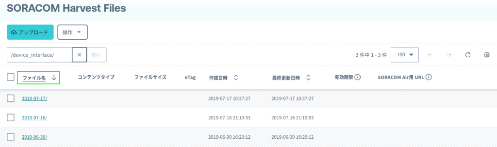 SORACOM Harvest Files の並び順をソートしてほしい!!
