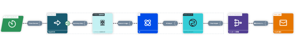 上記2~5の処理結果が4台分来るまで待機し、全てのカメラの実行結果が来たら収集して後ろの通知アクションへ回す処理をします。 - 最後に通知アクションで対象メールアドレスにメール通知(1通にまとめて送付される)